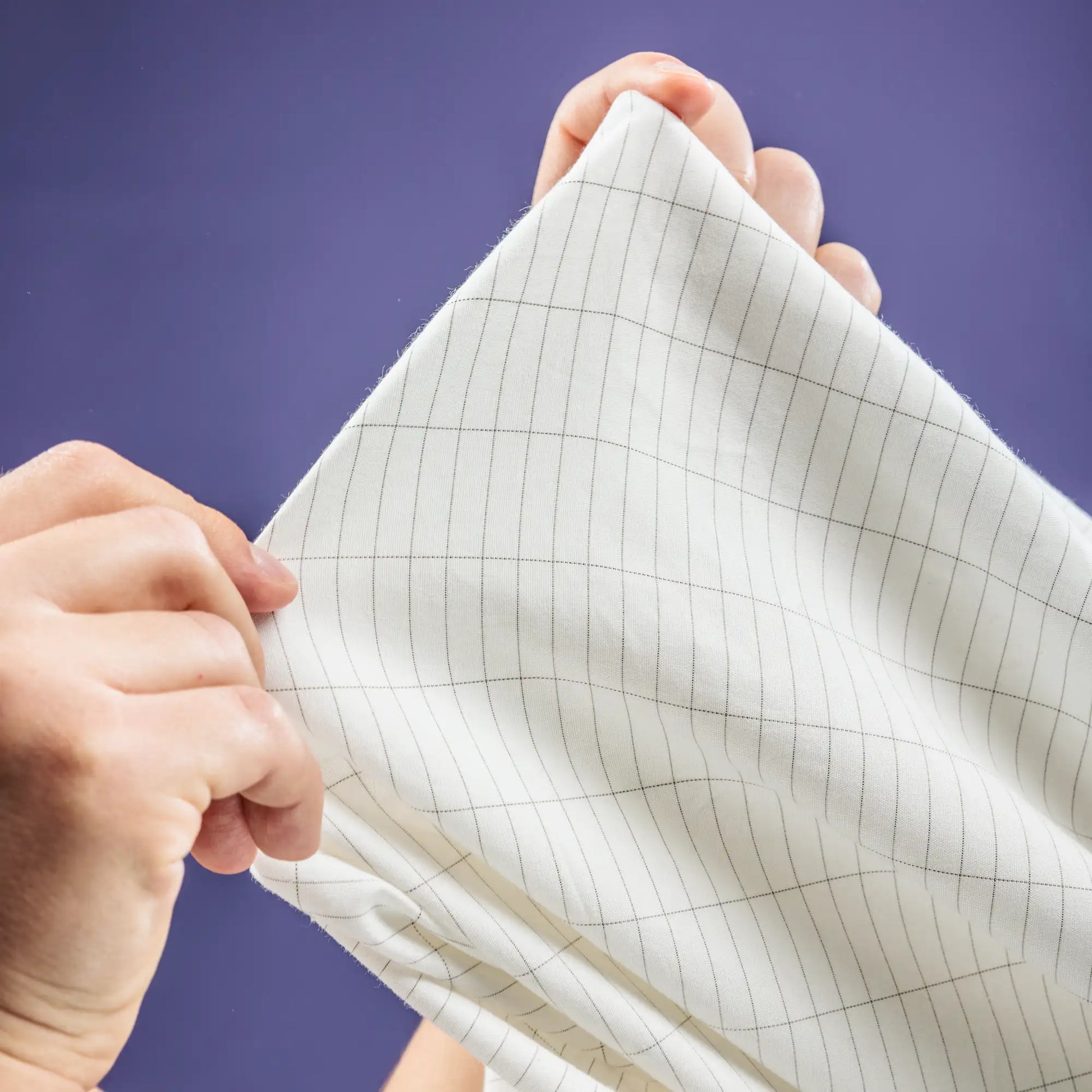 Hõbedaniit on puuvilla sisse kootud, tagades ühtlase ja püsiva juhtivuse kogu lina ulatuses.